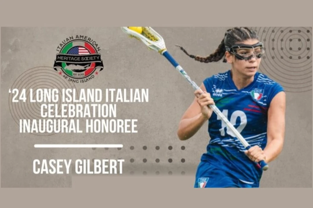 Casey Gilbert has the unique privilege of playing lacrosse for Team Italy as an Italian American. Italian through her mom and Sicilian grandmother, the Miller Place, NY resident is proud to represent Italy on the international sports stage and will be recognized at the inaugural Long Island Italian Celebration through the Italian American Heritage Society of Long Island.