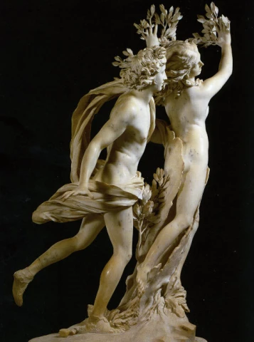 The skill of Bernini is now clear, having just completed this group, he begins working on the David, in which contortion, expressive output, command of what the material can render, narration, and extreme attention to detail continue to grow. David leaves, on the ground next to himself, his armor and in the moment of maximum concentration, he twists himself to give maximum strength to the launch of the sling. Another masterpiece for the Borghese collection, which was being located in the "casino", that is, the hunting lodge which was in the process of being finished. The last work of Gian Lorenzo's youth for Cardinal Borghese is the definitive statement of his artistic superiority: Apollo and Daphne.