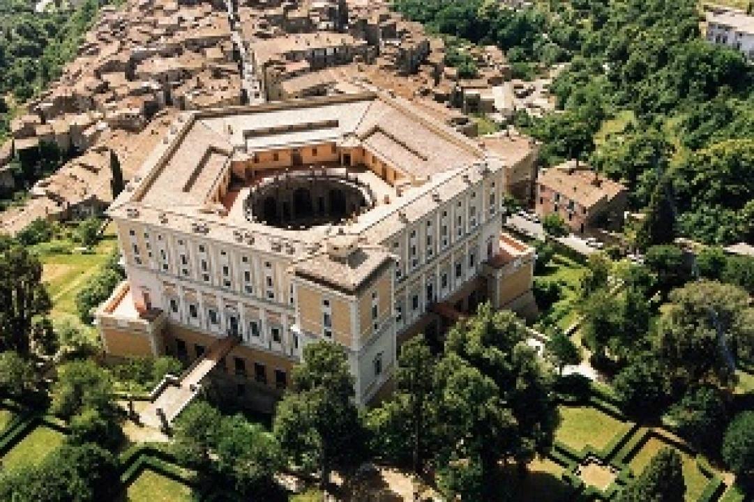 It's a pentagonal shaped building with a circular central courtyard; the facade stands out on a square from where you can see the city, while the back opens to the gardens that are meticulously well-finished in the architecture. Inside, the decoration was entrusted to the best Roman mannerist representatives of those times, all Raphael pupils, but also conscious of the study of Michelangelo. The brothers Taddeo and Federico Zuccari and Vignola himself had a role in the decoration of the wonderful royal staircase which rotates on thirty marble columns.