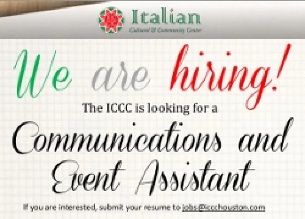 The Communications and Event Assistant position assists with the coordination and promotion of the Italian Cultural and Community Center's programs and events. The position will assist in developing and executing marketing strategies for all programs and events through verbal, written and on-line communications.