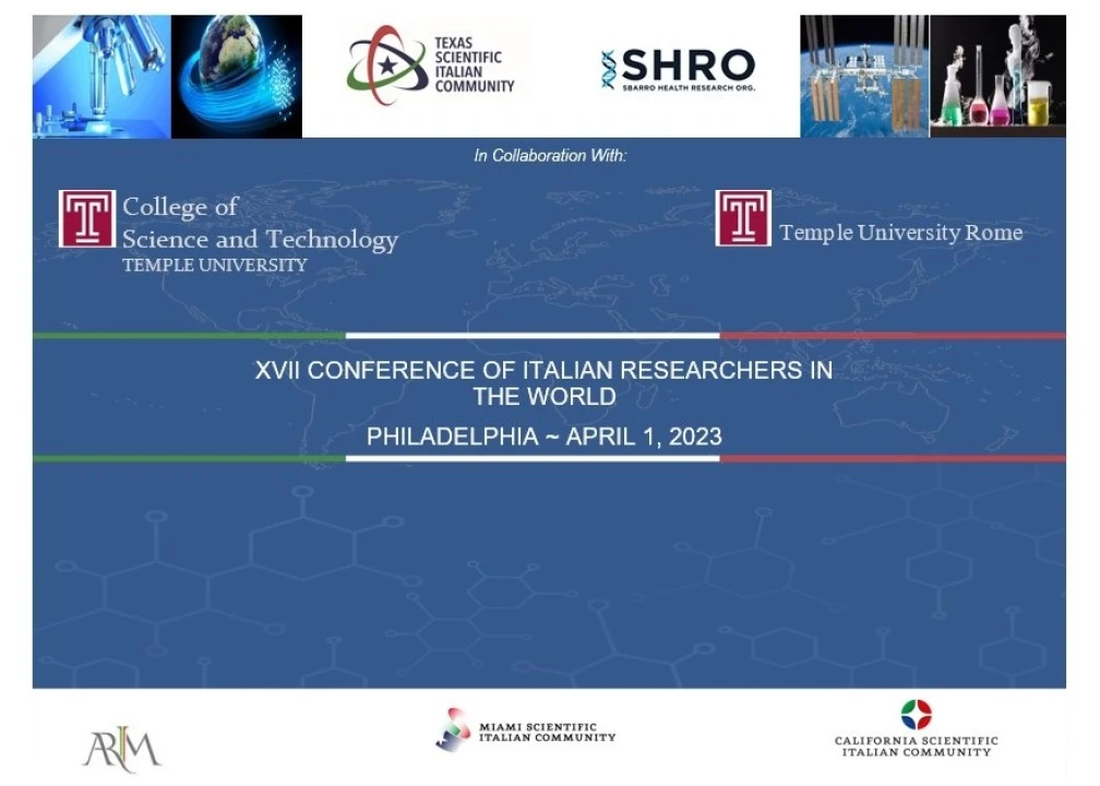The Sbarro Health Research Organization (SHRO), led by Prof. Antonio Giordano, in collaboration with the Texas Scientific Italian Community (TSIC), led by Prof. Andrea Giuffrida, will present the XVII Conference of Italian Researchers in the World on Saturday April 1st from 9:30 AM to 3:00 PM at Temple University of Philadelphia.