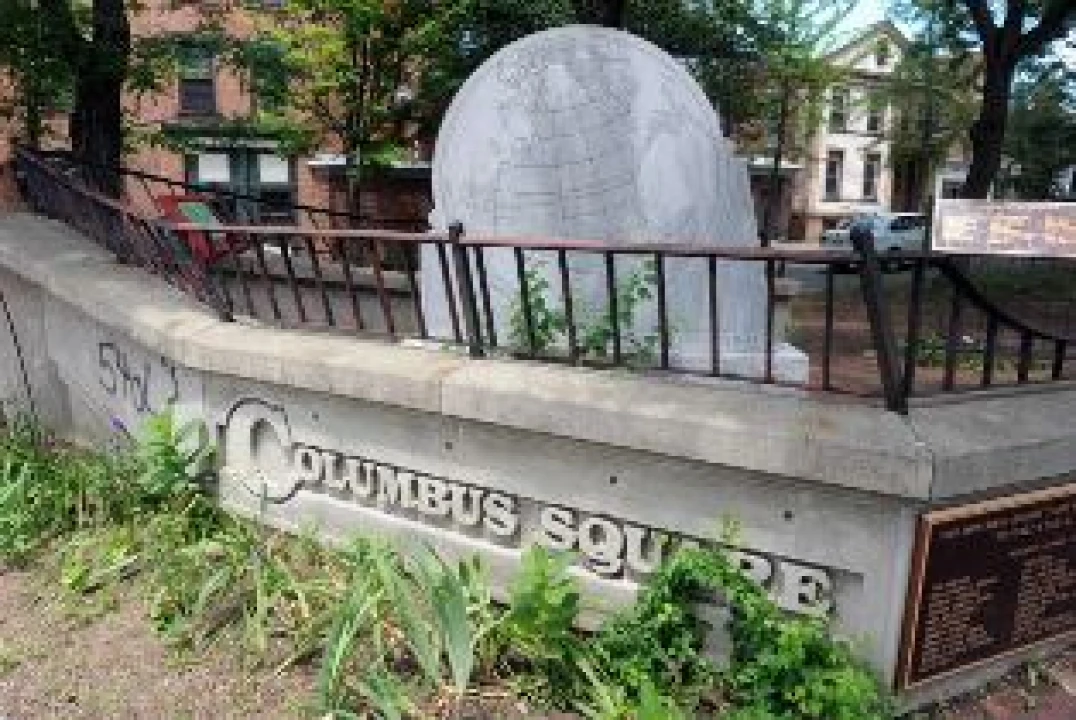 The city's Christopher Columbus monument has been defaced with gang-related graffiti for months, and the memorial is becoming overgrown. Located in Columbus Square at the intersection of Jacob Street, King Street and Fifth Avenue, it is just a couple of blocks from City Hall.