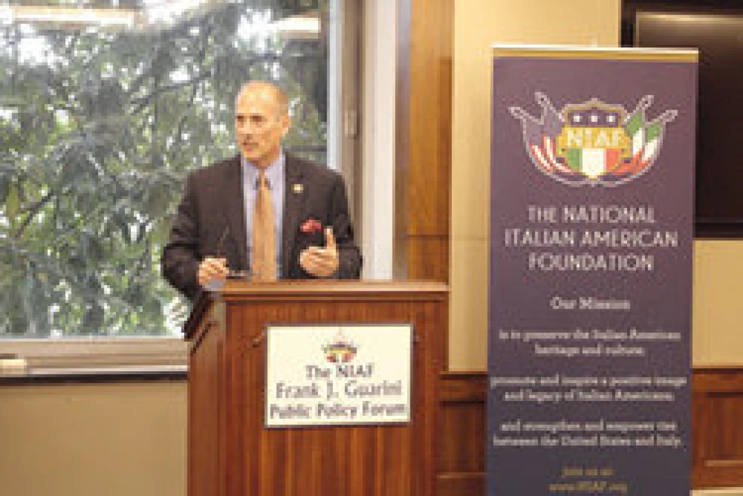 The National Italian American Foundation (NIAF) leadership, including President John M. Viola and the Foundation's Government Relations and Public Policy Committee Chair Mark Valente lll, welcomed Representative Tom Marino (Pa.), Chairman of the House Judiciary Subcommittee on Regulatory Reform, Commercial and Antitrust Law, who spoke at the first in the series of NIAF- Frank J. Guarini Public Policy Forums in 2015.