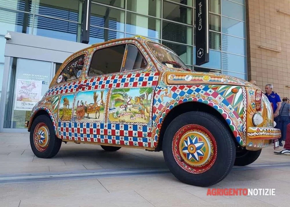 Fra le tante piccole Fiat Cinquecento che, oggi, stanno invadendo Agrigento, ce n'è una dai colori e dai disegni tipicamente siciliani. E' di proprietà di Salvatore Brucculeri e Stefania Piccolo.“ Una macchina stupenda - siciliana doc - che fra sei mesi si trasferirà, assieme ai suoi proprietari, in America e parteciperà anche al Columbus day.