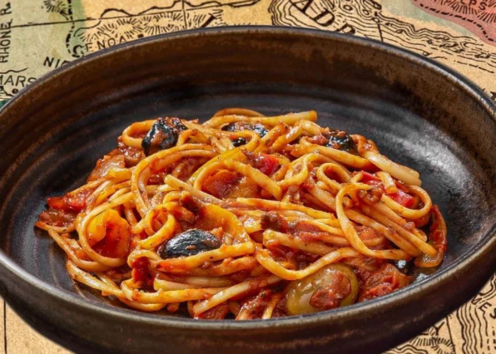 Name aside, there's nothing risqué about the actual ingredients. The backbone of this sauce is crushed red tomatoes mixed with olives, capers, garlic, and herbs such as oregano and parsley. In some circles, chili flakes, anchovies, and basil are also the norm.