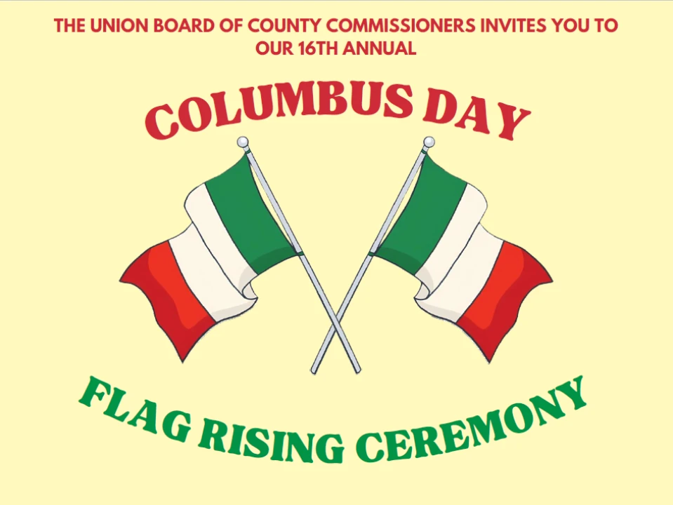 The Union County Board of County Commissioners invites residents to join the Annual Columbus Day Flag Raising event. The ceremony will take place on Friday, October 11th, at 11:00 a.m., on the steps of the Union County Courthouse, located at 2 Broad Street in Elizabeth.