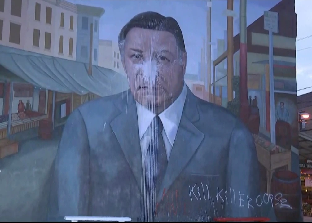 Earlier this week, the Frank Rizzo Statue was twice the target of vandalism. Now, vandals have struck the mural depicting the former mayor in Philadelphia’s Italian Market. Around 2:30 a.m. Saturday, as a group of residents guarded the Frank Rizzo statue in Center City against potential vandals, spray painters – yet again – targeted his mural at 9th Street and Montrose Avenue in South Philadelphia.