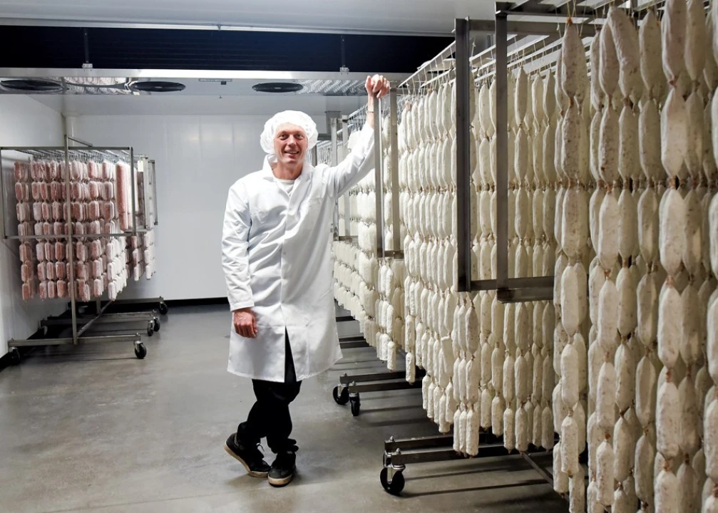 Owner Peter Colman started in 2011 with a line of fresh sausages made at Cate Farm in Plainfield; he's been producing Vermont Salumi's line of dry-cured salamis at Waitsfield's Mad River Food Hub since 2014. The new space, from which the business has been operating for six weeks, will allow him to increase production from 2,500 to 45,000 pounds of product at a time, he said.