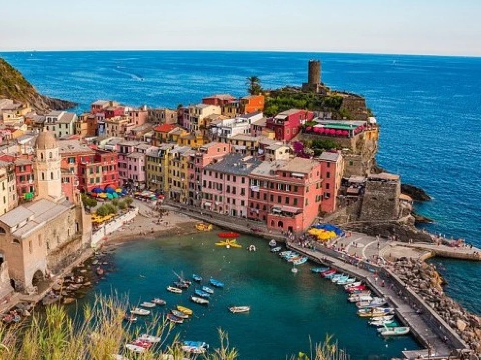 Vernazza is one of the five villages that make up the Cinque Terre, perched along the Ligurian coast. A small harbour framed by tall pastel houses and terraced vineyards climbing the hills behind, it remains one of the most photographed corners of Italy. Officially recognised as one of Italy's most beautiful towns, Vernazza is compact, so everything is within walking distance.