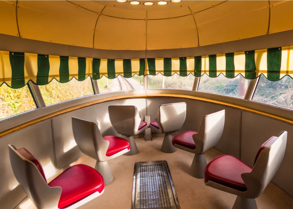 On July 23, 1960, crowds gathered at the Bologna Train Station to witness the maiden journey of a brand new electric train, the ETR 250 “Arlecchino.” The four-carriage, first-class only convoy was a thing to behold: It featured a striking gray-green magnolia livery, sinuous lines, and two belvedere— panoramic viewpoints—from which travelers could watch the sweeping landscape as if they were at the cinema.