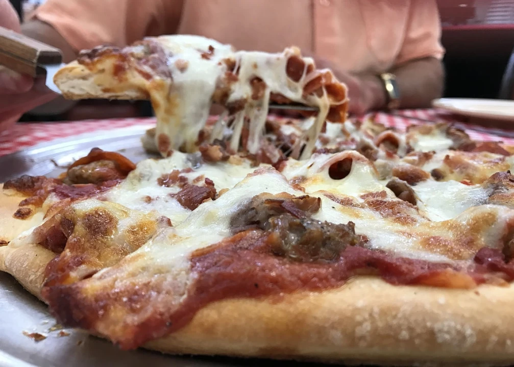 When you walk in the door of this pizzeria, the wonderful smells of simmering sauce and baking bread prepare you for the good food ahead. This is no ordinary pizza place. The sauces, dough, bread and Italian beef all are homemade. The friendly owners are a good match for the food they serve.