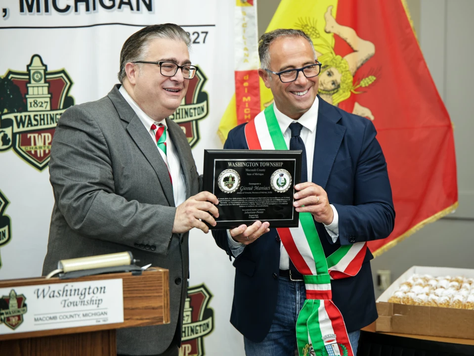 Washington Township Supervisor Sebastiano Previti held a reception honoring the mayor of Terrasini (Palermo), Giosuè Maniaci. Also in attendance were Fr. Pino Ingraio, a Sicilian folklore group of singers and musicians, and a delegation of citizens from Terrasini who traveled to Michigan with the mayor.