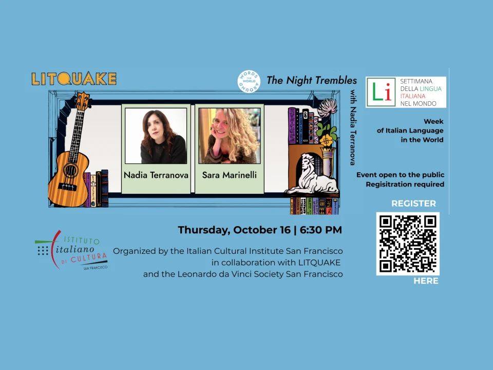 Written in Terranova’s distinctively lyric style, The Night Trembles is a melancholic ode to human resilience and the promise of the unknown. Join the author in bilingual conversation with USF writing professor Sara Marinelli.