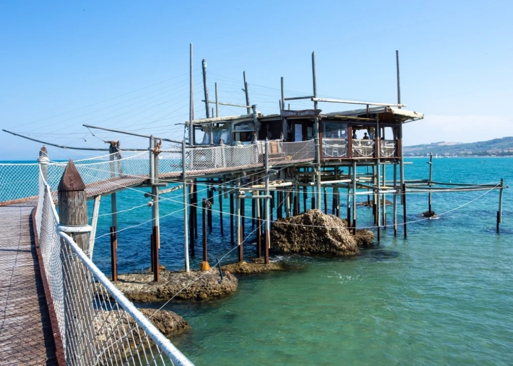 Along Italy’s Adriatic coast, you’ll find a unique seaside construction, the trabocchi (or trabucchi): they are a traditional type of fishing machine, popular in the regions of Molise, Puglia, and especially Abruzzo, specifically along the Costa dei Trabocchi, a stretch of coastline between Ortona and Vasto.