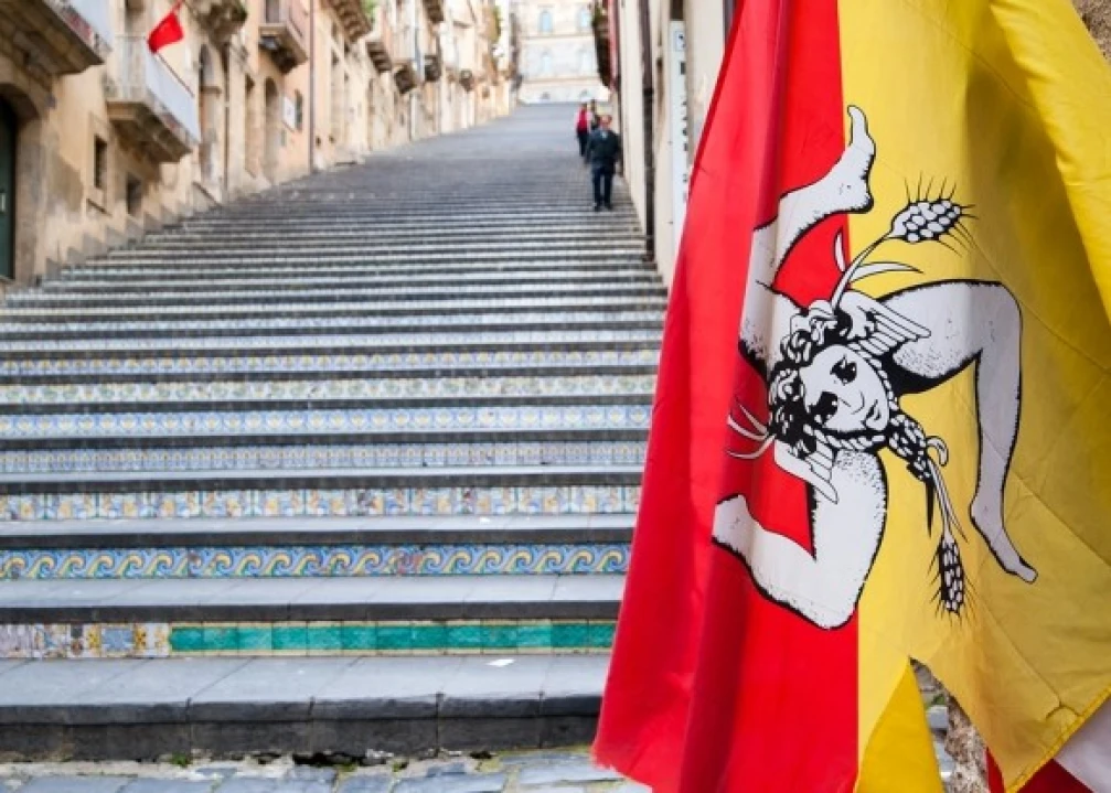 If you’ve traveled to Sicily, you’ve likely seen, on flags, ceramics and souvenirs, a strange-looking representation of a female head with three legs attached to it, flexed to form a triangle. That’s the symbol of Sicily, adopted by the island many centuries ago, when it was dominated by the Greeks, now used in the official Sicilian flag. The symbol is known as Trinacria, a Greek word that means ‘three pointed;’ it recalls the shape of the island, which resembles a triangle. Trinacria was the earliest known name of the island of Sicily.