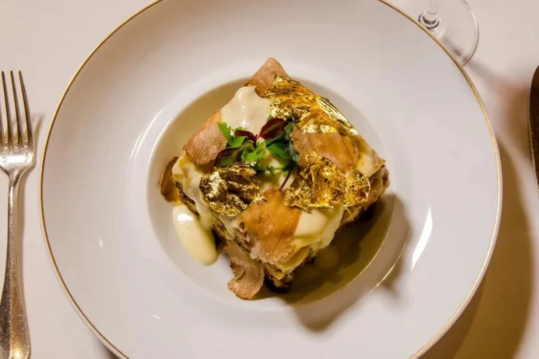 Lasagna may strike you as a homey Italian comfort food, but there is no food so humble that the world of fine dining can't transform it into a bit of conspicuous consumption. That's why you can find chocolate pudding and beef tacos that somehow cost more than $25,000 a piece. You would hope all that money is all about making it taste better, but the preponderance of edible gold leaf in these dishes, which is entirely flavorless, would suggest otherwise.