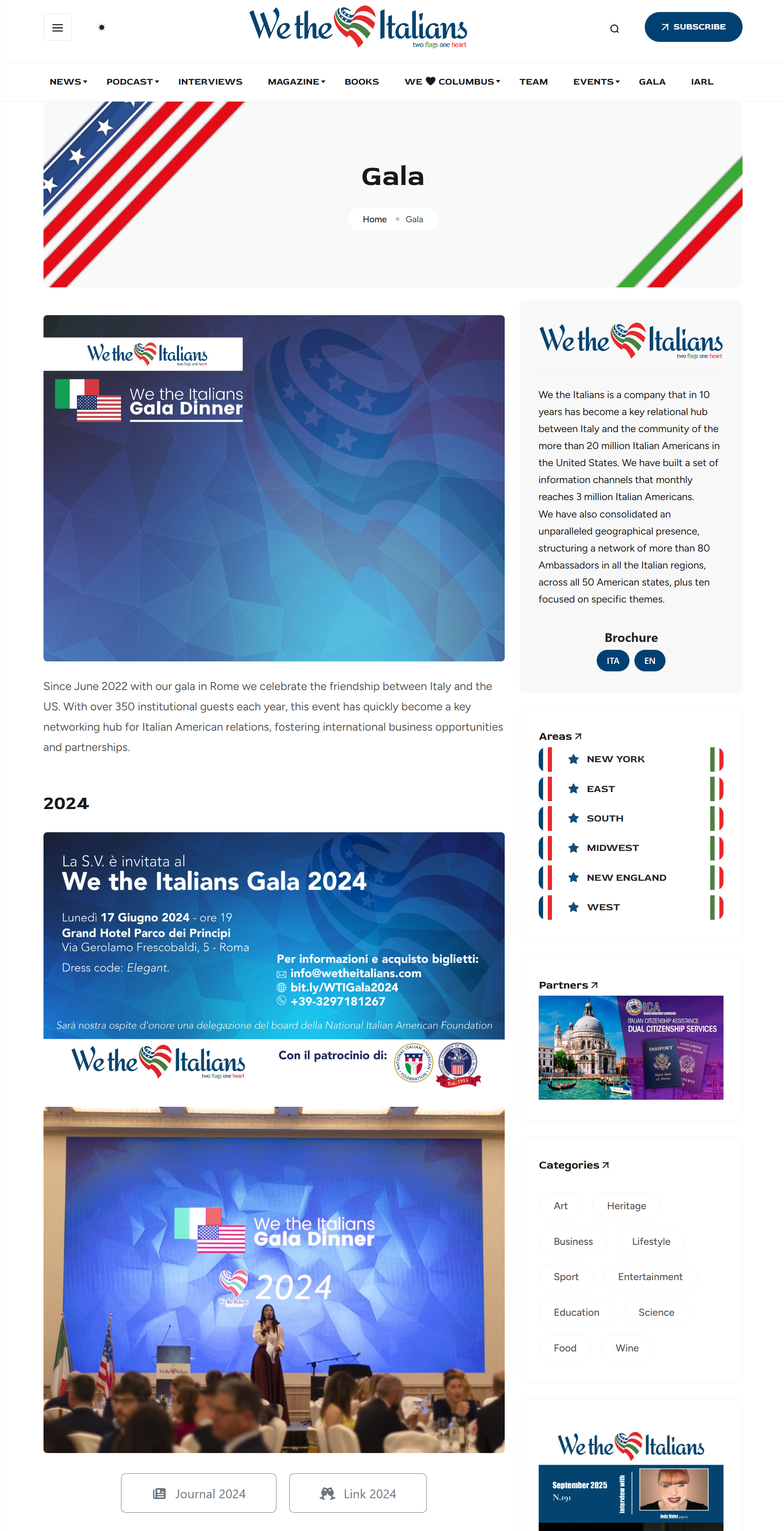 - Gala – Features descriptions, journals, photos, and videos from the three editions of our Gala, which will return – better than ever – in 2026.