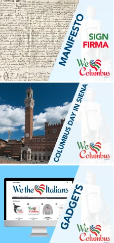 First of all, we want to remind you of our campaign We love Columbus, in defense of Christopher Columbus and of the Italian American community that elected him as its paladin. We know that there are also Italian Americans who do not feel so regarding him, and we respect their opinion: but we stand with Columbus, the pioneer, the explorer, the courageous Italian who brought civilization to the Americas. We invite you to sign our Manifesto, to buy the gadgets we have prepared for you, and we confirm that we are working to make a first Columbus Day in Italy, in Siena, on October 12 of this year. Stay tuned!