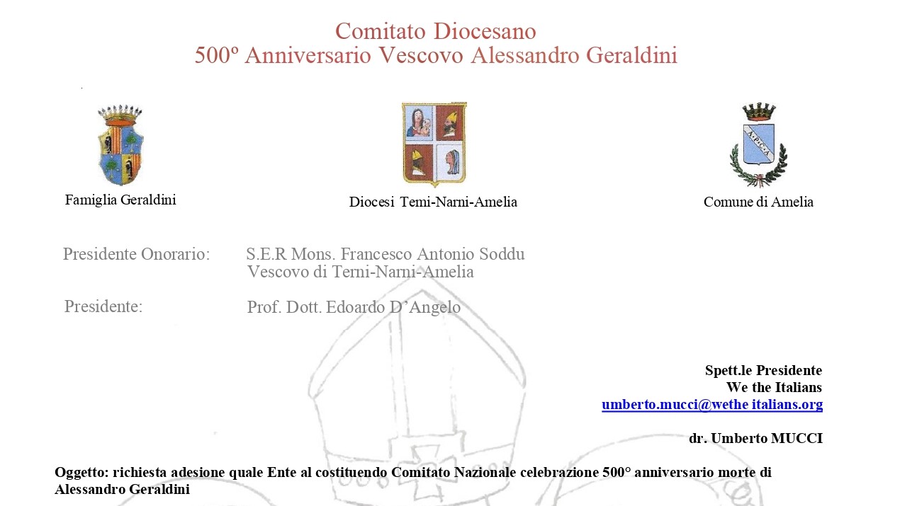 For the past few months our member Edoardo Colombo has been working to ensure our help in the celebrations of a very important man, but mainly unknown to almost everyone in the United States: Alessandro Geraldini. We are pleased to announce that we have accepted the invitation to participate as a sponsoring institution in the forming National Committee for the Celebrations of the 500th Anniversary of the Death of Msgr. Alessandro Geraldini, the first Resident Bishop of Santo Domingo, active in the Court of Ferdinand and Isabella the Catholic and known there for his support of Christopher Columbus. Without him Columbus' first voyage would hardly have been financed by Spain. The celebrations will be held throughout the year 2024, which is when the 500th anniversary of Msgr. Geraldini's death falls. Of course, we will keep you updated on these events.