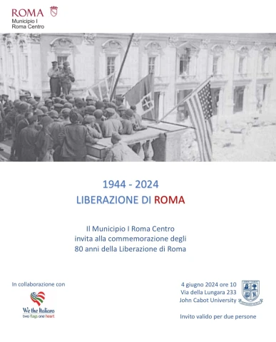 The first event is organized by the First Municipal District of Rome, together with John Cabot University, where we will gather to thank and celebrate the American soldiers who freed our Capital.