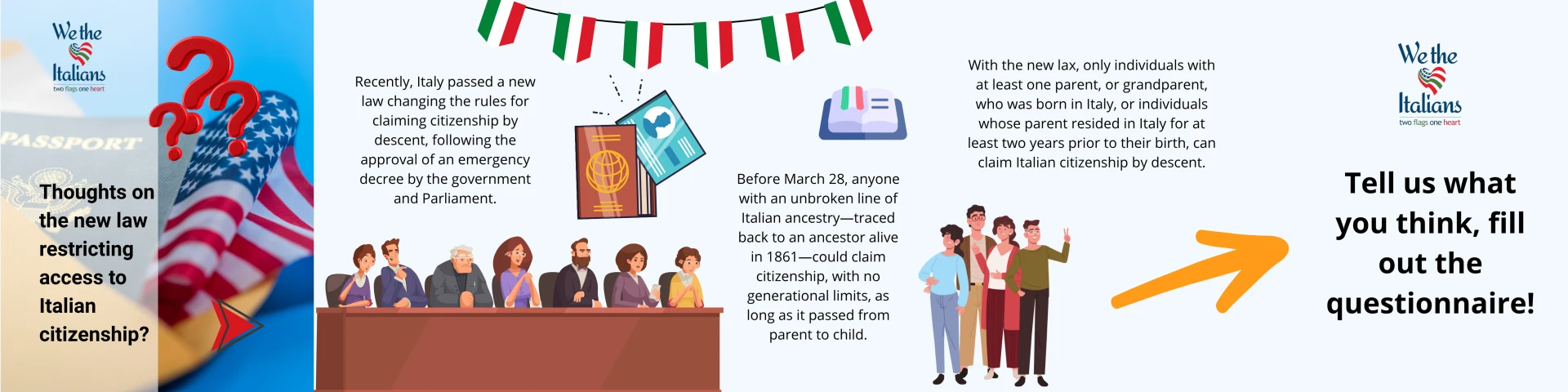 We began by surveying the Italian American community on a particularly sensitive and important issue that has recently been the subject of a controversial reform: dual citizenship. The title of this survey is: Two passports, One heart. We asked our audience whether they agreed with the new law. Of the 350 responses received, 35% agreed, while 65% disagreed. All the very interesting data are here.
