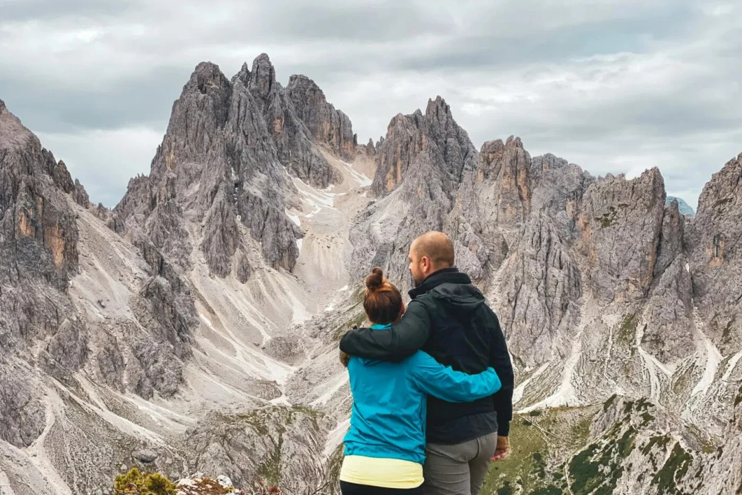 Located in Italy’s northeastern corner, bordering Austria, the Dolomites have a distinct landscape, culture, and cuisine that’s completely different from what you’ll find elsewhere in Italy. Up there, rolling hills and olive trees are replaced by jagged limestone peaks and alpine meadows where cows graze. Weathered Mediterranean buildings are replaced by wooden alpine chalets. And pasta is replaced by… just kidding, there’s still pasta!