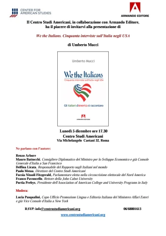 WTI Events: December 5 2016 Presentation of We the Italians, the book in Roma, Italy