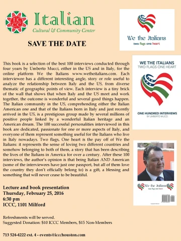 • WTI Events: February 25 2016 Presentation of We the Italians, the book in Houston, TX