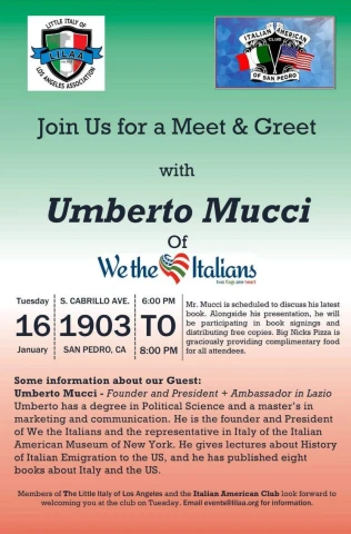 WTI Events: January 16, 2024 Presentation of We the Italians in San Pedro, CA