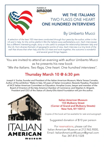• WTI Events: March 10 2016 Presentation of We the Italians, the book in New York, NY