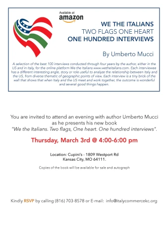 • WTI Events: March 3 2016 Presentation of We the Italians, the book in Kansas City, MO