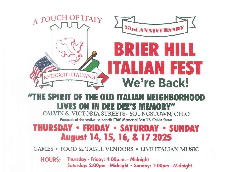 If you’re in the mood for Italian, it’s another good week around Youngstown, OH. The Brier Hill Festival is set up at Calvin and Victoria Streets in Youngstown. It’s the 33rd festival in what was called Little Italy. The neighborhood was where many of Youngstown’s first Italian settlers lived.