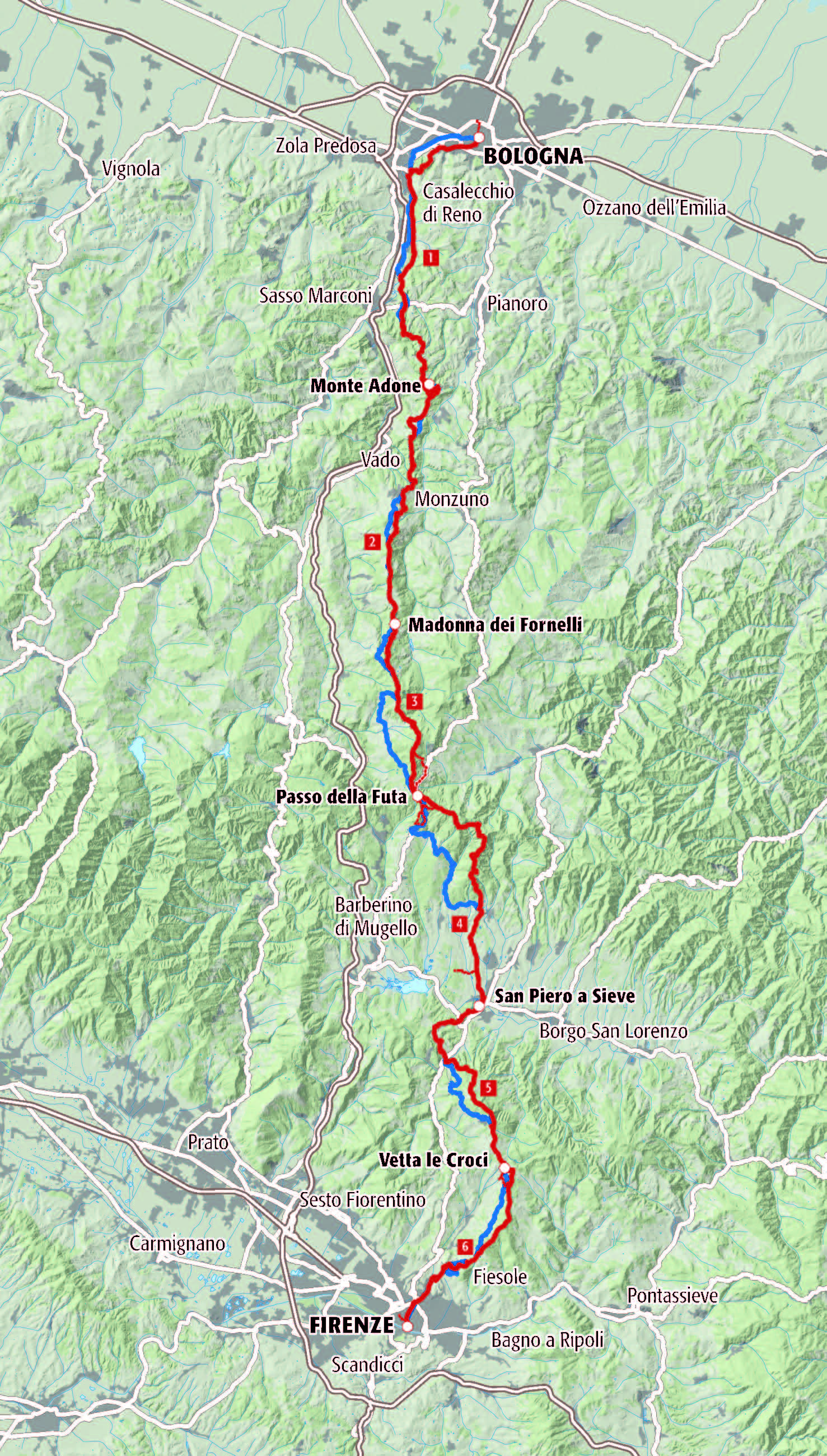 From Florence you can also hike some very short segments or you can do longer segments. I think the whole course from Bologna to Florence takes about seven days, but you can easily do day trips. But generally here you really have a lot of beautiful hiking you can do.