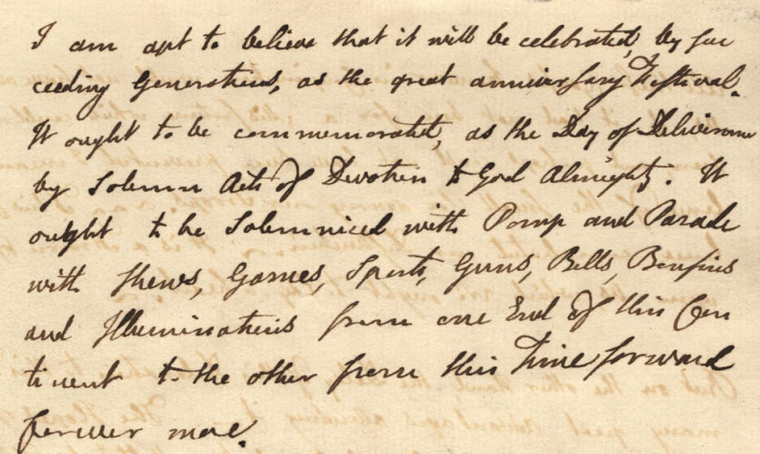 Another aspect is that July 4th was always envisioned to be not a solemn holiday, even though it essentially marked the beginning of a war. It was always expected to be a festive holiday. John Adams, who was a founding father, was famous for saying about it: “It ought to be solemnized with Pomp and Parade, with Shews, Games, Sports, Guns, Bells, Bonfires and Illuminations from one End of this Continent to the other from this Time forward forever more.” And that basically is what still happens.
