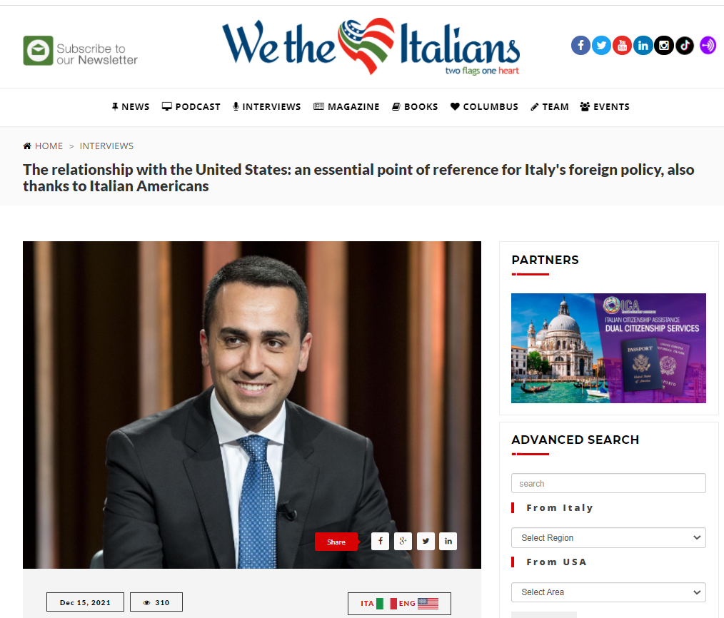 If you haven’t done it yet, please check our website for the exclusive interview, our last of this tenth year of interviews, that the Italian Minister of Foreign Affairs gave me. It was a big honor for me to be able to interview such a high ranking Minister of the Italian Government. For the first time, the Minister announces that 2024 will be the official year of root tourism, il turismo delle radici, to welcome all the Italians all over the world to comeback to Italy to the places their family is originally from.