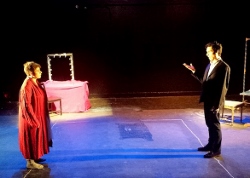 In scena ci sono Vito LaBella, nei panni dell'affarista senza scrupoli, Francesco Andolfi che interpreta il giovane drammaturgo idealista e Laura Caparrotti, fondatrice di Kairos oltre che columnist de La VOCE, che firma anche la regia e che nello spettacolo è "la donna", un personaggio enigmatico, un po' fantasma, un po' folletto dispettoso.