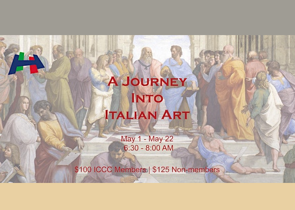 Monday, May 1 · 6:30 - 8pm CDT. ICCC Houston 1101 Milford St Houston, TX 77006. Because of the success of past Italian art history classes at ICCC, we are excited to present a new course that will highlight important aspects of Italian art through the ages. The course will be taught by art historian and ICCC instructor, Francesca Lanza.