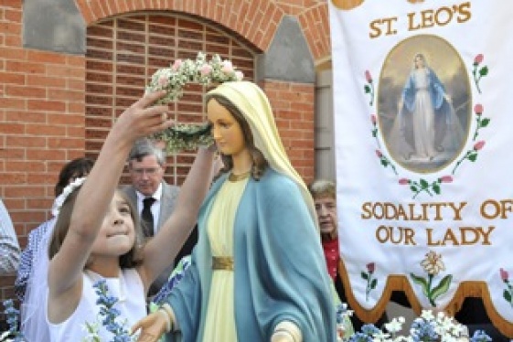 Saint Leo's traditional Mother's Day Mass, crowning of the Blessed Mother statue and outdoor procession through the neighborhood has been in existence for decades. After the statue of Mother Mary is crowned during 9:30 am Mass, it is processed through the streets of Little Italy, followed by children making their First Eucharist, clergy, a...