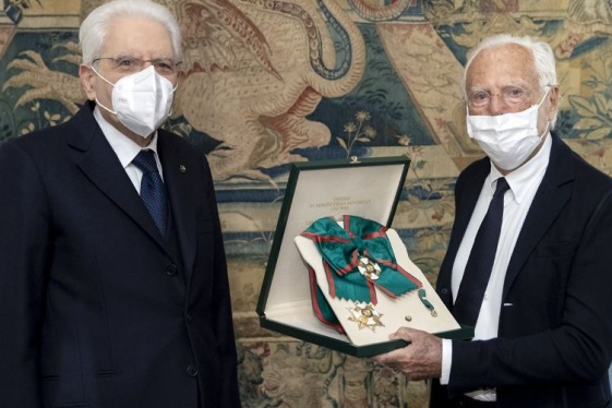READ MOREThe celebrated designer Giorgio Armani received Italy's highest honour on Friday for his services to Italian fashion. The president of Italy, Sergio Mattarella, bestowed the Knight Grand Cross on the 87-year-old fashion stylist at a private ceremony in the Quirinal Palace. Armani stated that he was "proud to represent Italy" and "honoured to receiv...