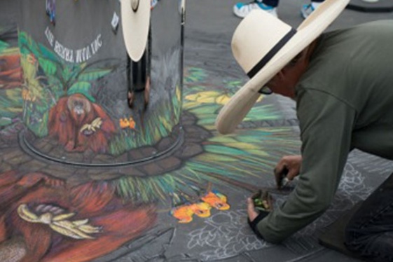READ MOREThe hands caught the attention of those walking by the front of the Santa Barbara Mission. The artist, barefoot and covered head to toe in chalk, bounced her head to the music from her ear buds and swiped soft hues along the pavement canvas. She scanned a reference image and lifted her head to view the result, then rubbed in the pastel chalk with h...