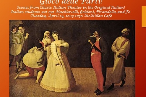 READ MOREScene dal teatro italiano classico nell'originale lingua italiana! Studenti della Washington University sotto la direzione della professoressa Rebecca Messbarger interpreteranno selezioni di Machiavelli, Goldoni, Pirandello e Fo, martedì 24 aprile dalle 10:15 alle 11:30 a.m. al McMillan Cafè della Washington University. Ovviamente l’ingresso è grat...