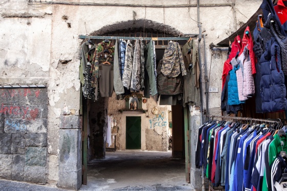 READ MOREErly each morning, keys turn in locks on the ground floor shops along Pugliano street in the Italian town of Ercolano. Doors open to reveal shiny sequin dresses, furs in a range of browns, and jeans from the 1970s—plus a slew of military uniforms, displayed on hangers, dangling from boxes, or draped on white sheets. Many of the clothes worn by Amer...