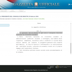 DIRECTIVE OF THE PRESIDENT OF THE COUNCIL OF MINISTERS February 20, 2004: Announcement of the "National Day of Christopher Columbus". (GU General Series n.86 of 13-04-2004)