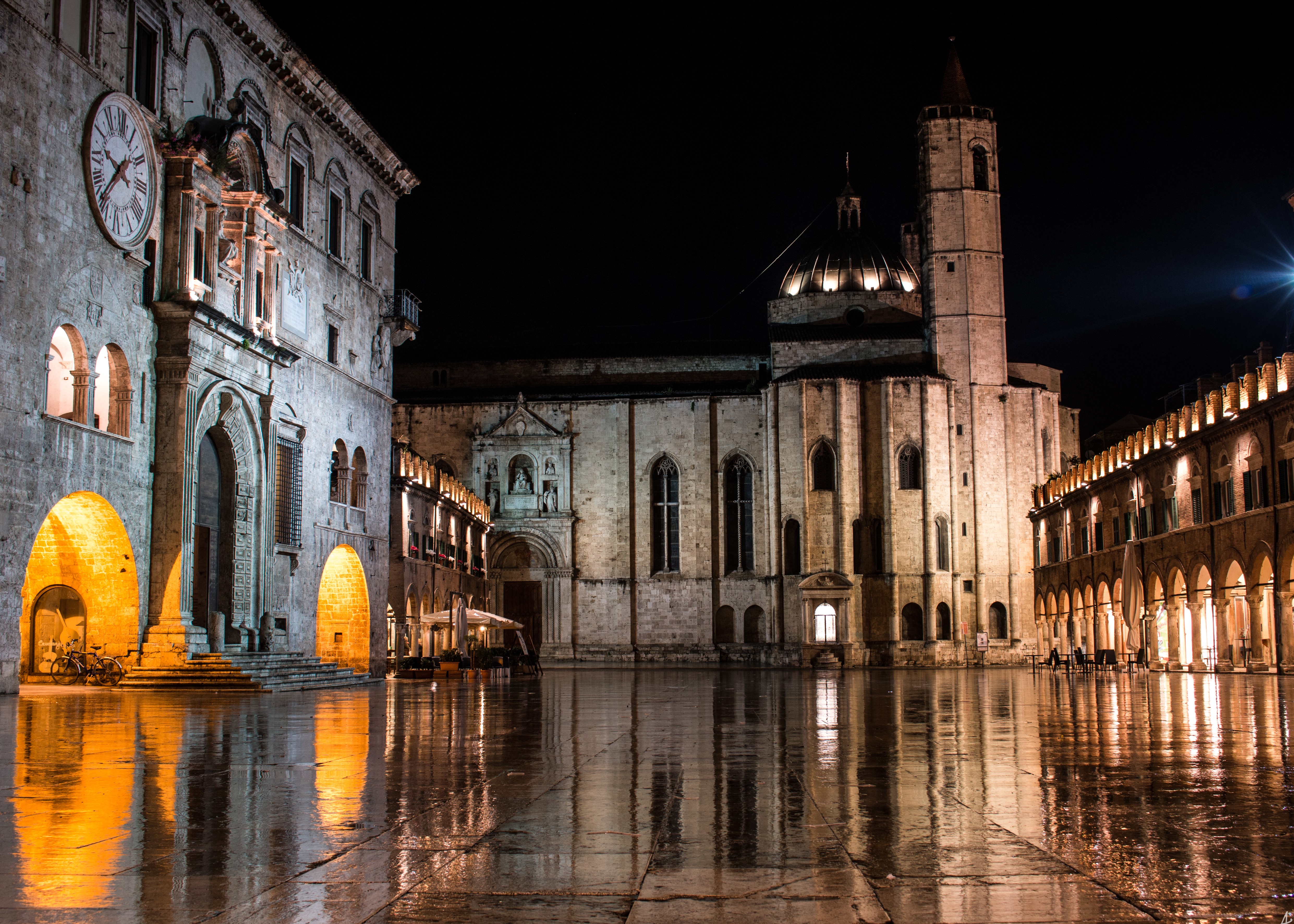The most important edifices line the magnificent Piazza del Popolo, among which are Palazzo dei Capitani del Popolo (13th Century), the historic Caffè Meletti, the Church of St. Francis (13th-16th Centuries), and the Loggia dei Mercanti.