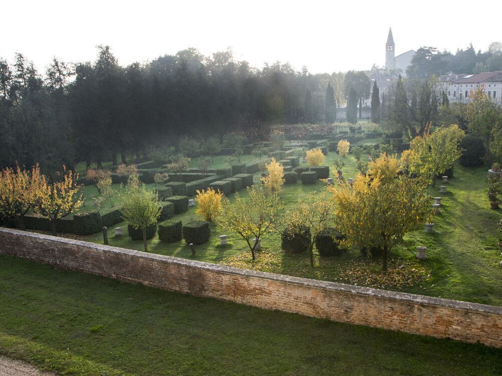 The whole garden area is fenced by walls and has large prospective avenues and two fishponds long more than 500 meters which fit between forests and cultivated areas. In 1700 the “menagerie” was designed and built to leave free the animals. In front of the villa is the formal garden with hedges of boxwood (Buxus sempervirens) and four monumental yews (Taxus baccata), the “orchard” with fruit trees and vegetable gardens.