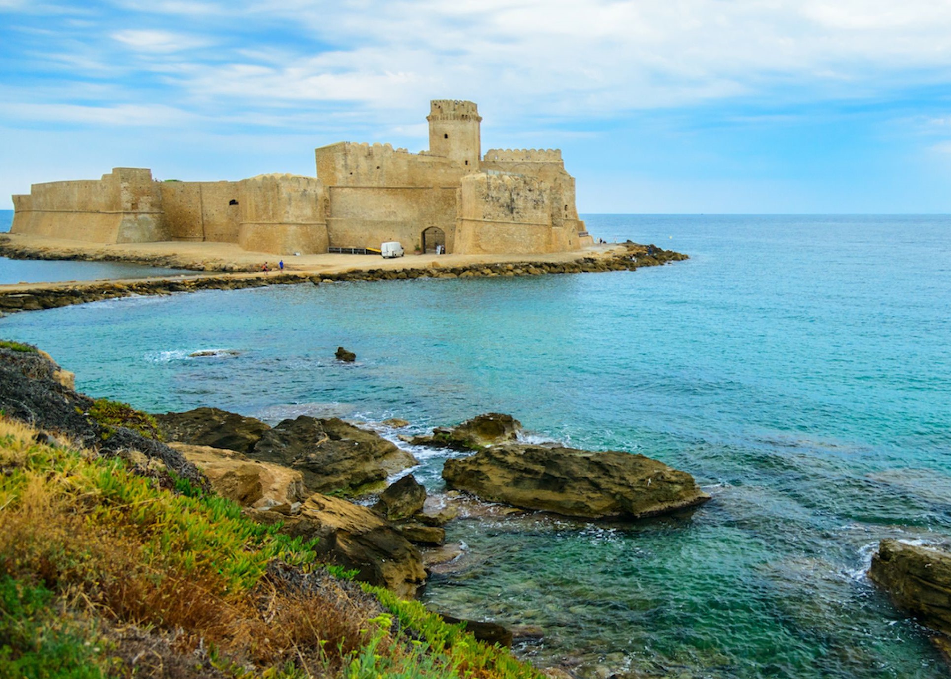 Continuing along the road that runs alongside the Ionian Sea in the direction of Crotone, and crossing the marvellous tourist destinations of Sellia Marina and Botricello, you reach Le Castella in Isola Capo Rizzuto, the location of the homonymous protected marine area. Its uniqueness and location: Built on an islet in 204 BC when condottiere Hannibal stayed in the area inhabited by Arabs and Aragonese, it is connected to the coast by a thin strip of land. In ancient times, Le Castella wasn’t the only castle in the area and the plural name Le indicates there were several fortifications here.