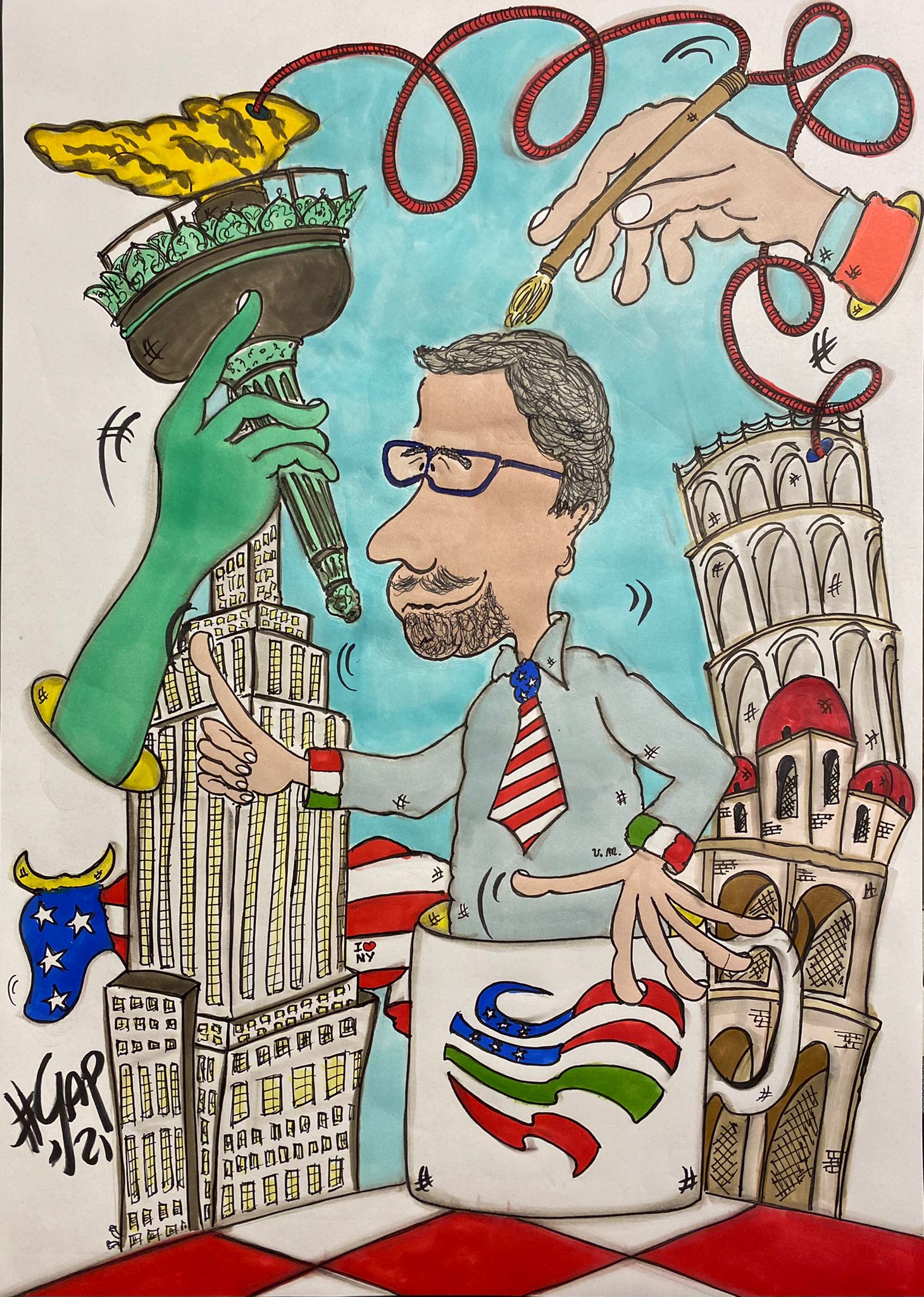 You know that We the Italians have Ambassadors in almost any Italian region. Our Ambassador in Sicily is Pietro Viola, a very good friend, a professional who is very involved in promoting the US in Sicily. Pietro is also a fantastic artist who draws cartoons, and he was kind enough to dedicate one to me and to We the Italians. Please check this masterpiece, for which I’m very glad to Pietro.